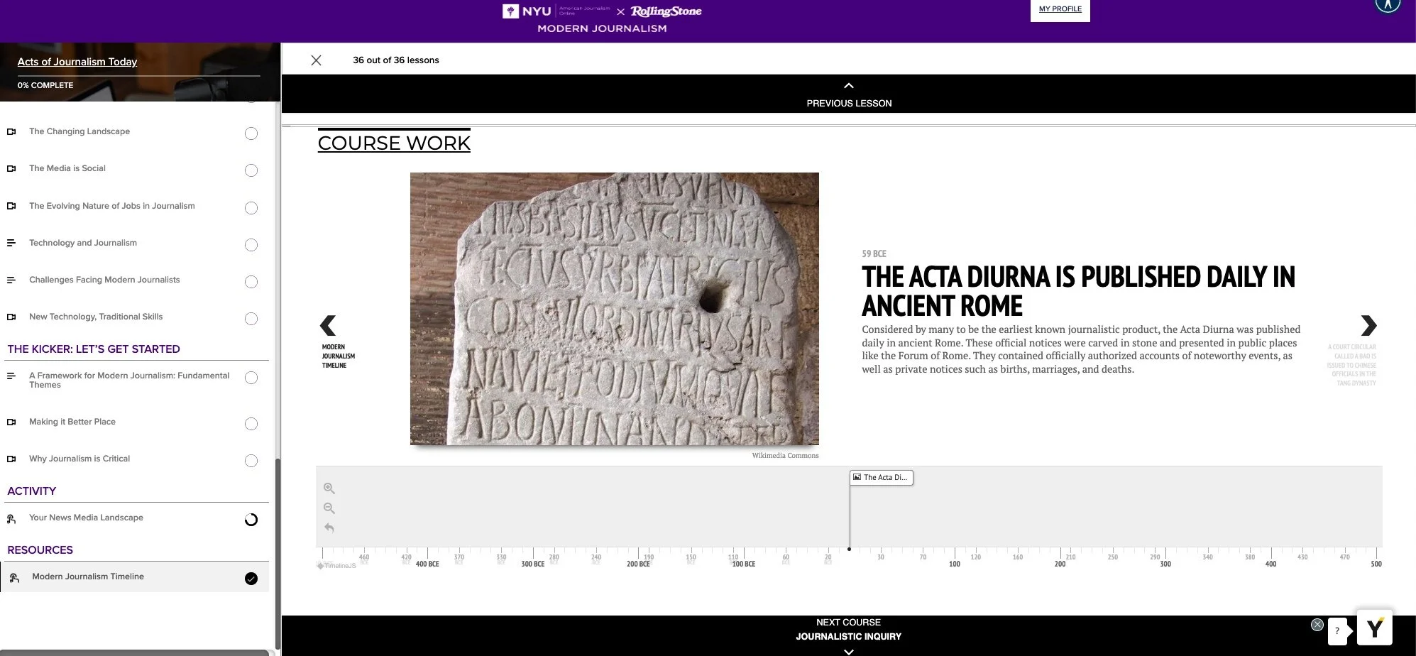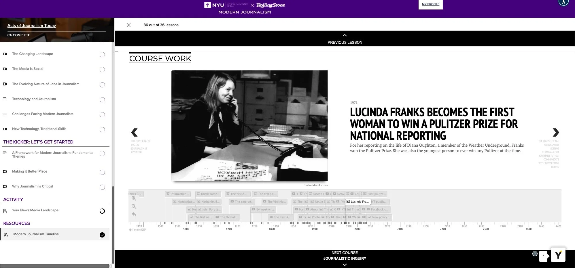 A well-researched interactive timeline gives the student extensive historical setting for the industry and helps contextualize the milestones discussed in the video lectures.