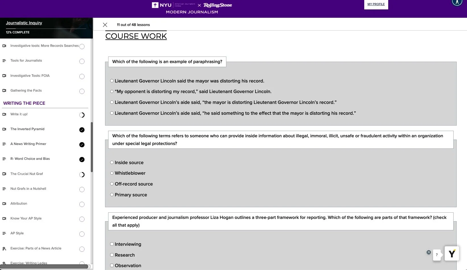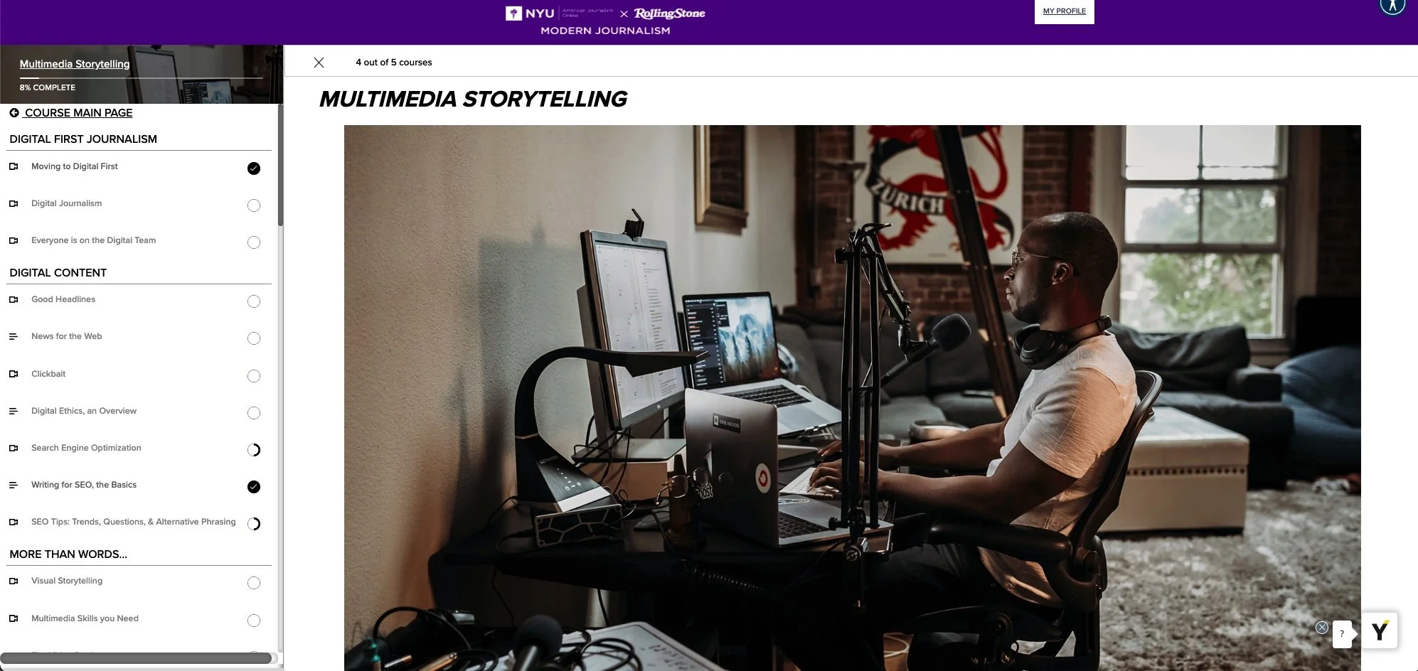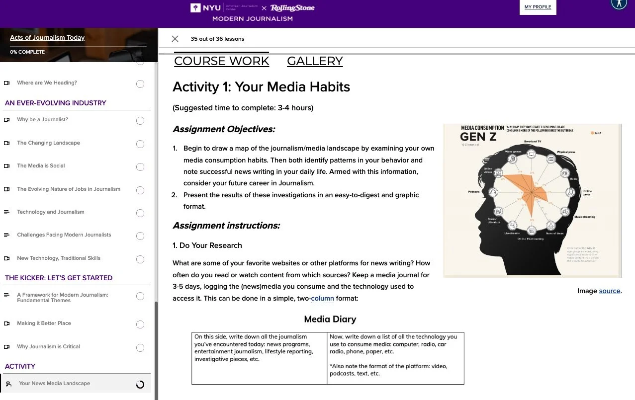 Modern Journalism consists of six course modules: