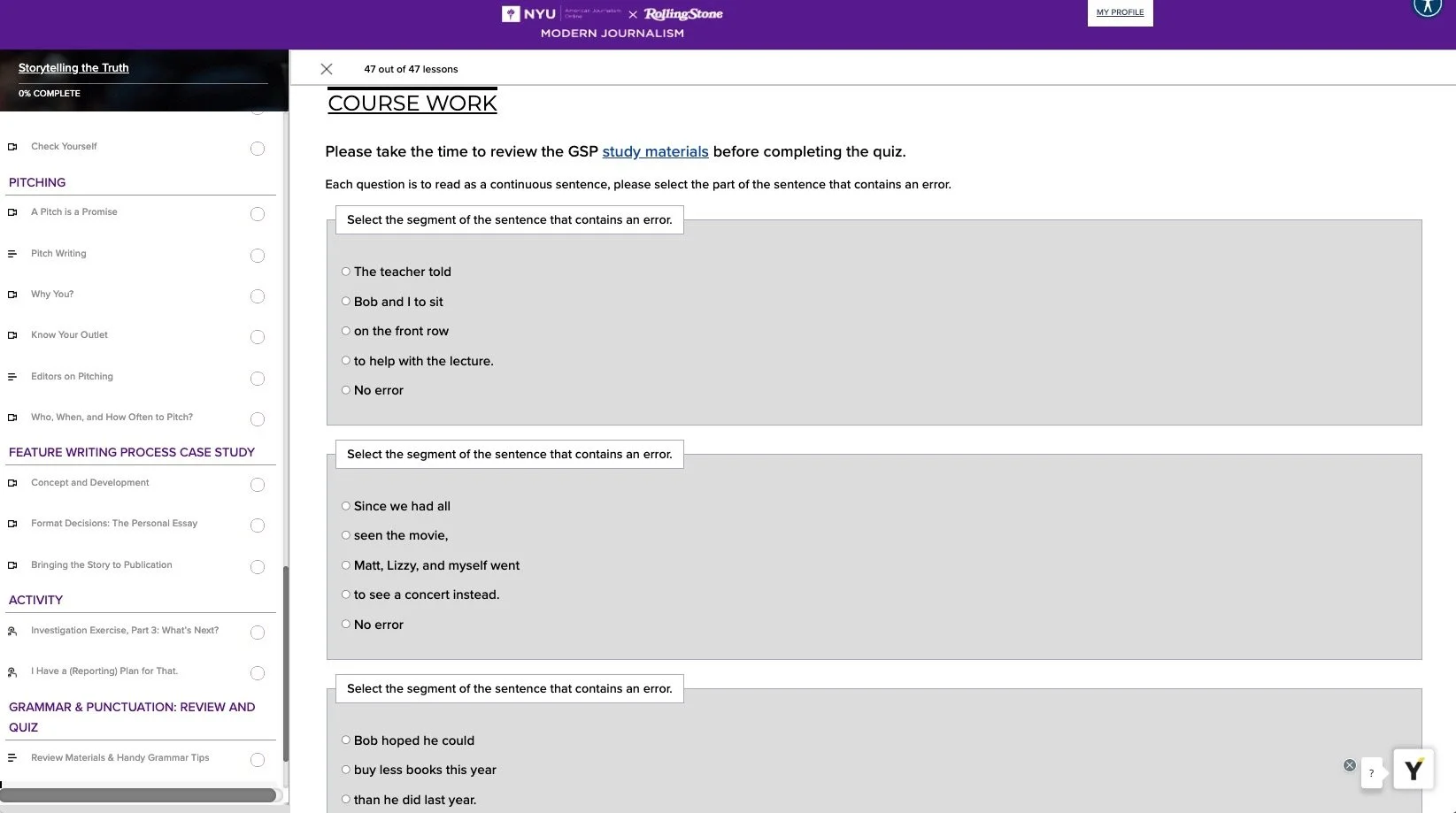 Every journalism program, at some point, gives students a grammar, spelling, and punctuation (GSP) test. I mimicked one here using a multiple-choice quiz tool for learners.